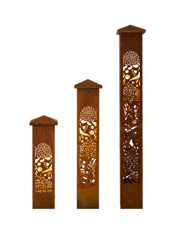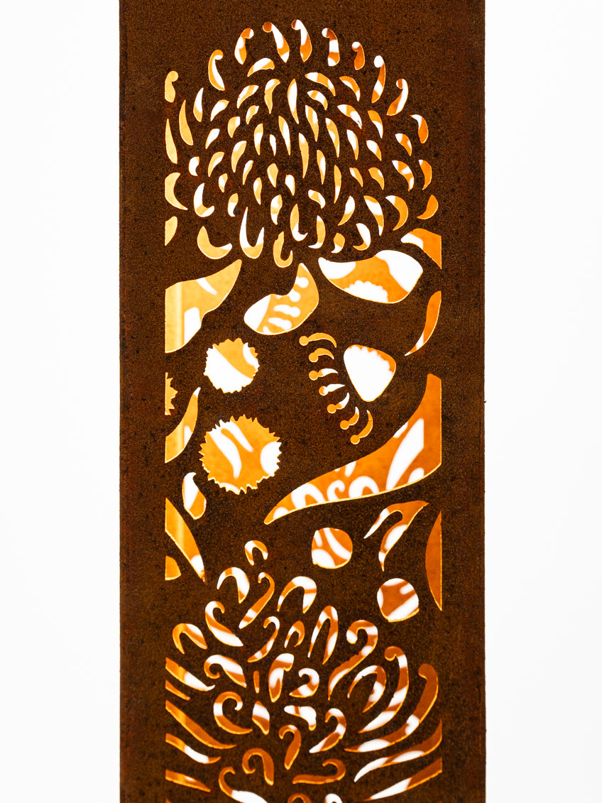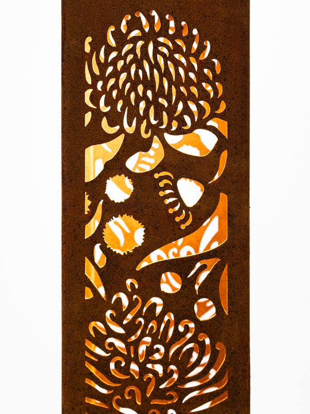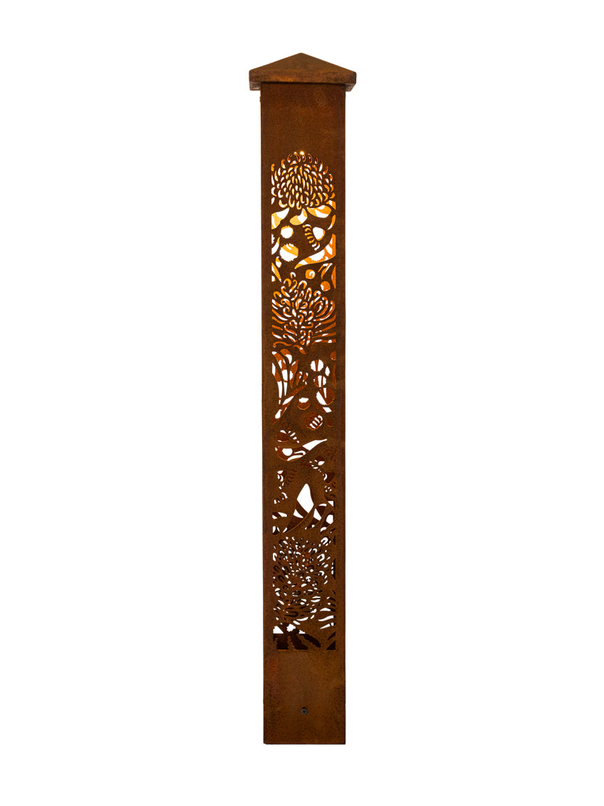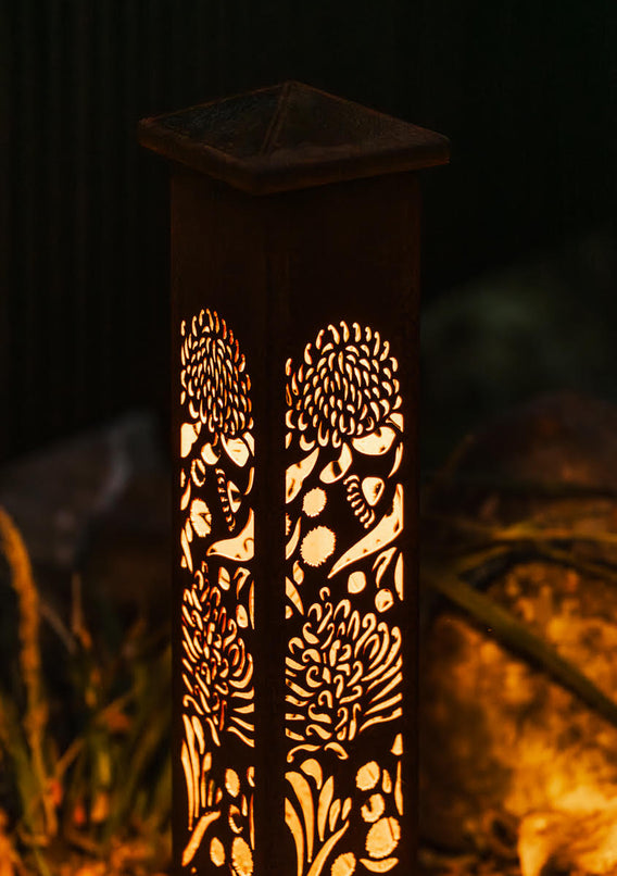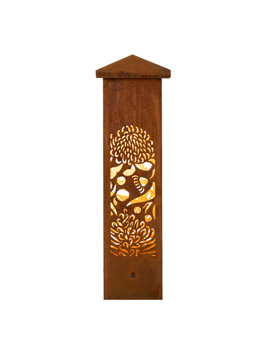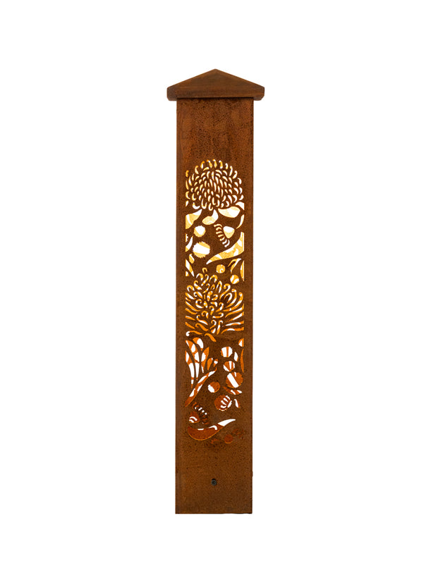 Illuminate your outdoor space with the Aussie Wildflower Corten Steel Bollard Light, a beautiful tribute to Australia’s vibrant and diverse wildflowers. This stunning light fixture features intricately designed blooms that symbolise resilience, beauty, and the unique spirit of the Australian landscape. Made from premium Corten steel, it not only withstands the elements but also develops a rich, weathered patina over time, enhancing its natural aesthetic. Perfect for highlighting pathways, gardens, or outdoor living areas, the Aussie Bush Flower Bollard Light casts a warm, inviting glow, transforming your environment into a stunning display of nature’s artistry. Celebrate Australia’s floral heritage and bring a touch of the bush into your home!
